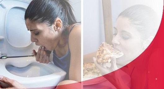Приступ переедания является ведущим симптомом. Вначале возникают и нарастают внутреннее напряжение и эмоциональный дискомфорт. Во время еды больной ощущает непродолжительную эйфорию, его настроение повышается, исчезают печаль, тревожность, неудовлетворение собственным внешним видом в частности и жизнью в целом. Он не способен контролировать количество съеденного, желудок переполняется, возникают боли, тяжесть, распирание, тошнота, отрыжка. А еще появляется отвращение к себе, чувство вины, раскаяние. Чтобы обрести душевное спокойствие, человек вызывает рвоту. Но особого облегчения ни на физическом, ни на психоэмоциональном уровне это ему не приносит.